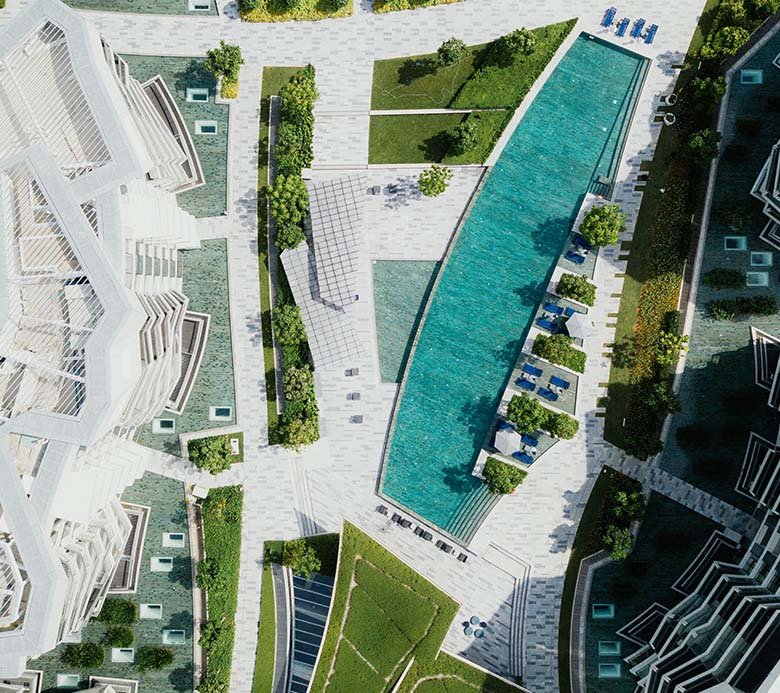 Projetado para desafiar o convencional, o design do Aurum rompe as barreiras entre o interior e o exterior. Nossas fachadas em vidro do piso ao teto não servem apenas à estética; elas são convites diários para que a paisagem faça parte da sua decoração. A volumetria do edifício foi esculpida para garantir que cada residência tenha sua privacidade preservada, enquanto a orientação solar privilegia a luz natural e a ventilação cruzada, criando um microclima de conforto e bem-estar constante.